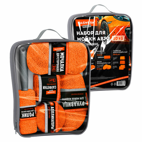 Набор для мойки авто и детейлинга 10 в 1, оранжевый, СУМКА ДЛЯ ХРАНЕНИЯ В КОМПЛЕКТЕ, DASWERK, 609483