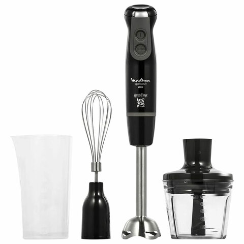 Блендер погружной MOULINEX Optitouch DD833810, 600 Вт, 16 скоростей, 3 насадки, стакан, черный, 7211