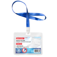 Бейдж горизонтальный (54х85мм) на 2 карты с лентой 45 см ЗАЩИТА ОТ ВЛАГИ И ПЫЛИ, BRAUBERG EXTRA, 238