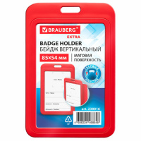 Бейдж вертикальный (85х54 мм), красный, МАТОВАЯ ПОВЕРХНОСТЬ, BRAUBERG EXTRA, 238816
