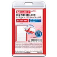 Бейдж вертикальный (85х54 мм) на 2 карты, с рулеткой, ЗАЩИТА ОТ ВЛАГИ И ПЫЛИ, BRAUBERG EXTRA, 238824
