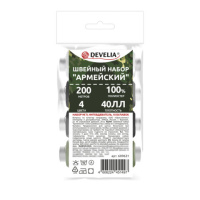 Набор швейный "Армейский", 40ЛЛ, 200 м, 4 цвета, иглы, нитевдеватель, булавки, DEVELIA (Девелиа), 60