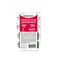 Набор швейный "Дорожный" 40ЛЛ, 200 м, 2бел/2черн, иглы, нитевдеватель, булавки, DEVELIA (Девелиа), 6