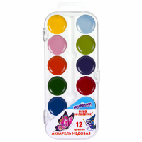 Краски акварельные ЮНЛАНДИЯ "ЮНЫЙ ВОЛШЕБНИК", медовые, 12 цветов, круглые кюветы, пластик, 192358