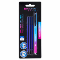 Ручка стираемая гелевая BRAUBERG "Grade", СИНЯЯ, 3 сменных стержня, узел 0,7 мм, линия письма 0,5 мм