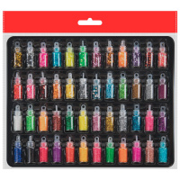 Блестки для декора НАБОР 48 видов по 2 грамма, в стеклянных тубах ОСТРОВ СОКРОВИЩ, 665681
