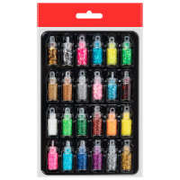 Блестки для декора НАБОР 24 вида по 2 грамма, в стеклянных тубах, ОСТРОВ СОКРОВИЩ, 665680