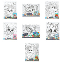 Картина детская по контуру, АССОРТИ 7 видов, 20х25 см, на подрамнике, акрил, кисти, МУЛЬТИ АРТ, 8084
