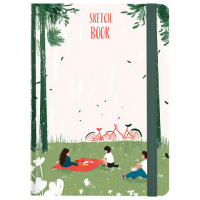 Скетчбук, белая бумага 120 г/м2, 145х203 мм, 80 л., резинка, твердый, BRAUBERG ART, "Прогулка", 1168
