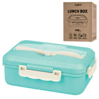 Ланч-бокс контейнер, 1 секция, 3 отделения, 1,4 л, ложка, вилка, 8х21х14 см, мятный, JOYLUX (ДЖОЙЛЮК