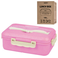 Ланч-бокс контейнер, 1 секция, 3 отделения, 1,4 л, ложка, вилка, 8х21х14 см, розовый, JOYLUX (ДЖОЙЛЮ