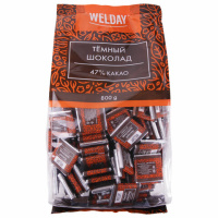Шоколад порционный WELDAY "Тёмный 47%", 800 г (160 плиток по 5 г), пакет