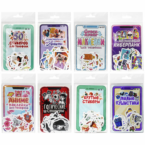 Набор наклеек для телефона, ассорти, 50 наклеек, 100х150 мм, ПП