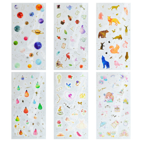 В наборе от 16 до 26 наклеек с трендовыми дизайнами, которые впишутся в любой стиль и идеально его дополнят.