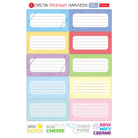 Наклейки КЛАССИКА для маркировки школьных принадлежностей, НАБОР 4 листа, 56 наклеек, HTB, 4Н5н