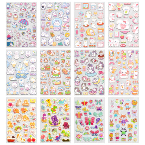 Объёмные наклейки FUNSTER - идеальный выбор для творчества! Эти очаровательные наклейки в ярких дизайнах ассорти поднимут настроение и добавят красок в повседневность.Превратите обычные вещи в яркие и милые аксессуары с многоразовыми наклейками! Они легко клеятся на бумагу, картон, пластик, стекло, дерево и другие поверхности, а благодаря качественному клеевому слою их можно переклеивать без следов.