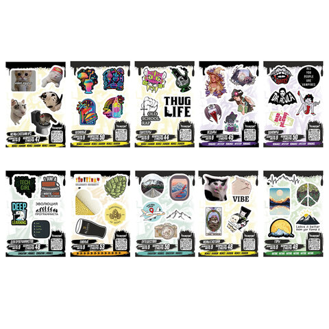 Наклейки виниловые, 44-50 шт., 9 листов, А6, "МОДЕРН", АССОРТИ, NALEPKING