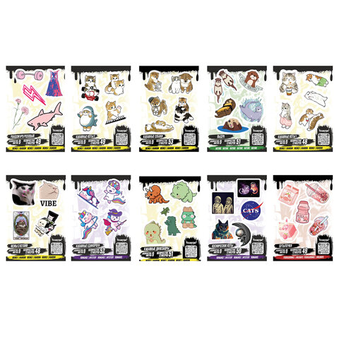 Наклейки виниловые, 49-53 шт., 9 листов, А6, "ЗАБАВНЫЕ ДИЗАЙНЫ", АССОРТИ, NALEPKING отзывы