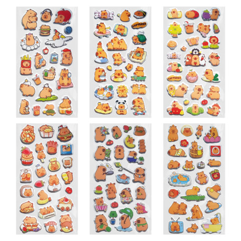 Наклейки зефирные "Капибары", 18х9,5 см, ассорти 6 видов, FUNSTER (ФАНСТЕР), 666093 отзывы