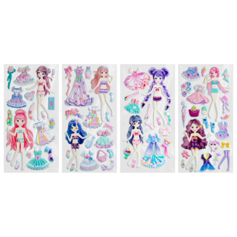 В наборе от 14 до 23 ярких наклеек с куколками и аксессуарами для них, которые помогут ребенку почувствовать себя настоящим модельером, создавая уникальные образы.