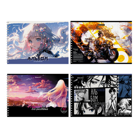 Альбом для рисования А4, 40 л., гребень, обложка картон, BRAUBERG, 195х285 мм, "АНИМЕ" (4 вида), 107