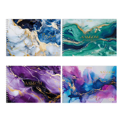 Альбом для рисования А4, 40 л., гребень, обложка картон, BRAUBERG, 195х285 мм, "МРАМОР" (4 вида), 10 отзывы