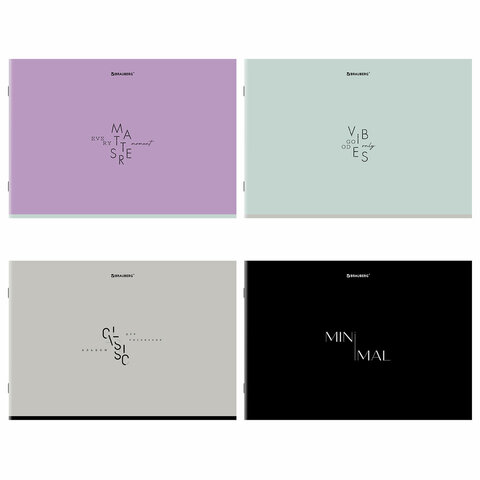 Альбом для рисования А4, 40 листов, скоба, обложка картон, BRAUBERG, 203х288 мм, "МИНИМАЛ" (4 вида),