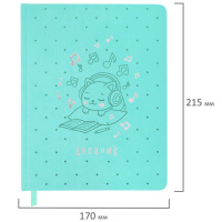 Дневник 1-11 класс 48 л., кожзам (твердая), застежка, BRAUBERG, "Котик с рыбкой", 107229