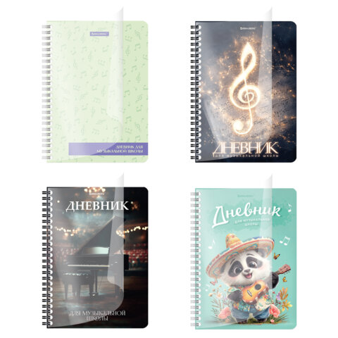Дневник для музыкальной школы 48 листов, гребень, пластиковая обложка, картон, BRAUBERG, "МИКС", 107 отзывы