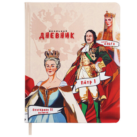 Дневник 1-11 класс 48 л., кожзам (твердая), печать, цветной блок, BRAUBERG, "Великие Люди", 107232