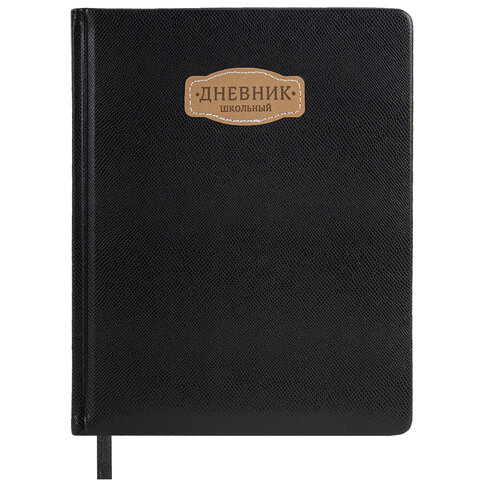 Дневник 1-11 класс 48 л., кожзам (твердая с поролоном), нашивка, BRAUBERG IGUANA, черный, 107225