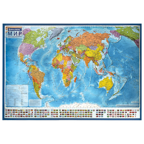 На политической карте мира BRAUBERG отображается современное политико-административное устройство мира: названия государств и их столицы, крупнейшие города и границы стран. Внизу карты расположены государственные флаги.Окунитесь в волшебный мир географии вместе с интерактивной картой мира BRAUBERG благодаря приложению IQ Globen!