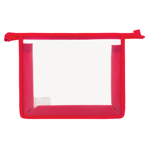 Папка для тетрадей А5 ПИФАГОР, пластик, молния сверху, прозрачная, красный, 272114