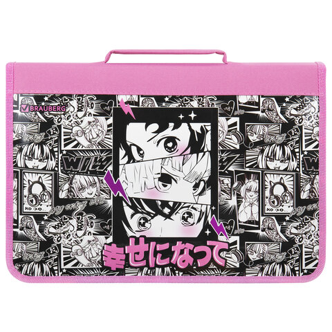 Папка на молнии BRAUBERG А4 с ручкой, с органайзером, 1 отделение, "Anime movie", 272216