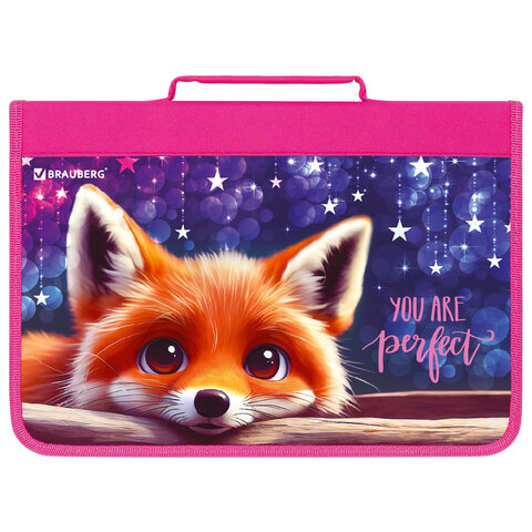 Папка на молнии BRAUBERG А4 с ручкой, с органайзером, 1 отделение, "Cute fox", 272217