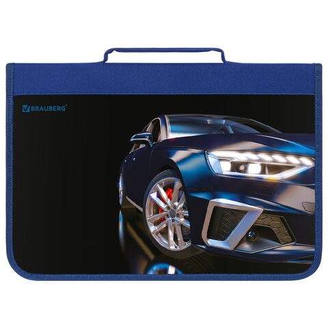 Папка на молнии BRAUBERG А4 с ручкой, с органайзером, 1 отделение, "Super car", 272219