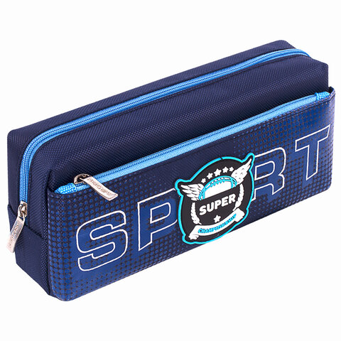 Пенал ЮНЛАНДИЯ, 2 отделения, полиэстер, "Super", синий, 21х6х9 см, 270277