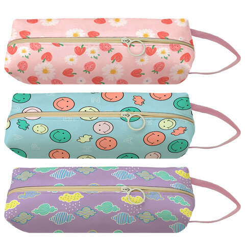 Пенал мягкий ПИФАГОР, 1 отделение, с ручкой, ПВХ, ассорти "Patterns", 21х9х6 см, 273827 отзывы