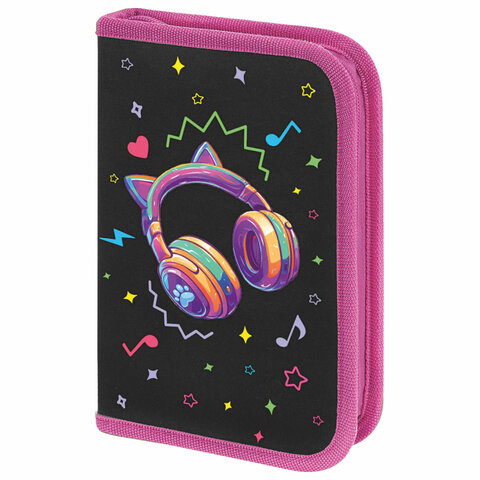 Пенал BRAUBERG с наполнением, 1 отделение, 1 откидная планка, 24 предмета, 21х14 см, "Headphones", 2 отзывы
