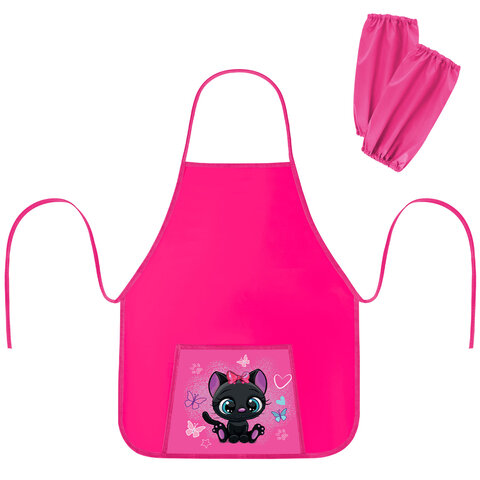 Фартук с нарукавниками для уроков труда ПИФАГОР, 1 карман, 46x54 см, "Black kitten", 273761
