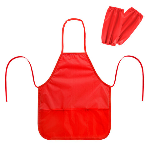 Фартук с нарукавниками для уроков труда ПИФАГОР, 3 кармана, стандартный размер, 44x55 см, красный, 2