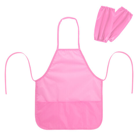 Фартук с нарукавниками для уроков труда ПИФАГОР, 3 кармана, стандартный размер, 44x55 см, розовый, 2 отзывы