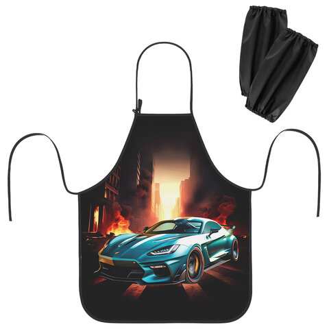 Фартук с нарукавниками для уроков труда ЮНЛАНДИЯ, регулировка по росту, 46х54 см, "Fire car", 273768