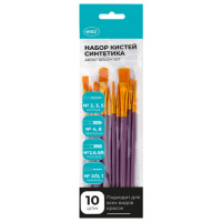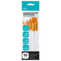 Кисти набор 10 шт., синтетика, белые, № 2/0-8 (Круглые; Овальные; Плоские; Лайнеры), WBZ (ВБЗ), 2010