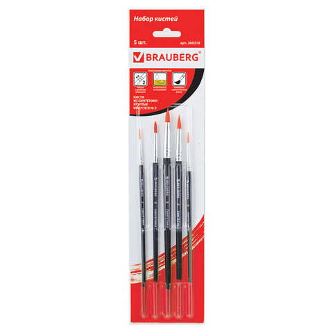 Кисти BRAUBERG, набор 5 шт. (синтетическая круглая № 1, 2, 3, 4, 5), блистер, 200218 отзывы