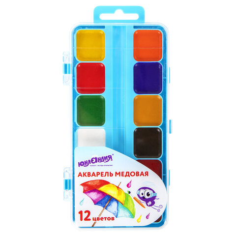Акварельные краски ЮНЛАНДИЯ "ЮНЛАНДИК-ХУДОЖНИК" идеально подходят для уроков детского творчества и художественного изобразительного искусства. Рисование способствует развитию образного мышления, глазомера, тонкому восприятию цветовой гаммы.12 ярких насыщенных цветов отлично смешиваются между собой и позволяют создать множество оттенков, обеспечивают однородное окрашивание. Краски быстро высыхают и не портятся со временем. Безопасны для детей, нетоксичны. Выпускаются в пластиковом пенале с прозрачной крышкой, квадратной формой кювет и отделением для кисточки. Упаковка обладает компактными размерами и легким весом.