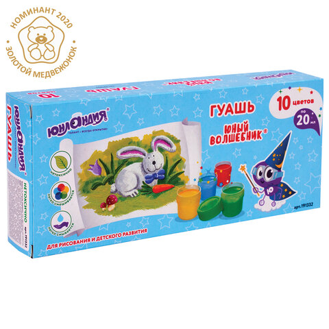 Гуашь ЮНЛАНДИЯ "ЮНЫЙ ВОЛШЕБНИК", 10 цветов по 20 мл, высшее качество, без кисти, картонная упаковка, отзывы
