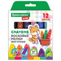 Восковые мелки фигурные BRAUBERG KIDS "РАКЕТА", НАБОР 24 цвета + НАКЛЕЙКИ В ПОДАРОК, 273083
