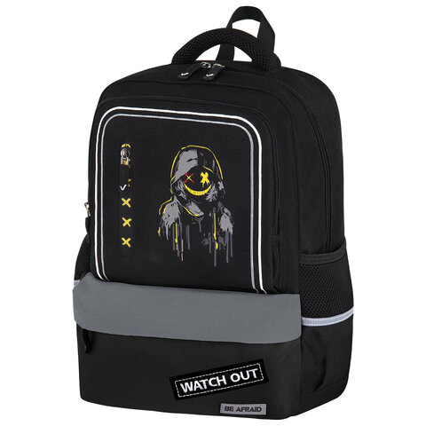 Рюкзак BRAUBERG STAR, 1 отделение, 5 карманов, "Watch out", черный, 40x29x13 см, 273132