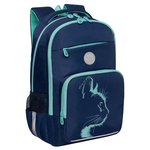 Рюкзак GRIZZLY школьный, анатомическая спинка, 2 отделения, для девочек, "AZURE", 40х25х13 см, RG-56